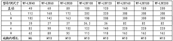 注:其中孔徑為Ф,長為L高為H厚為D,地腳中心距為A