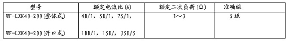 WF-LJK系列: 常用變比(特殊變比根據(jù)客戶要求設(shè)計制作)