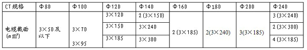 三、現(xiàn)場電纜與互感器規(guī)格選擇參數(shù):