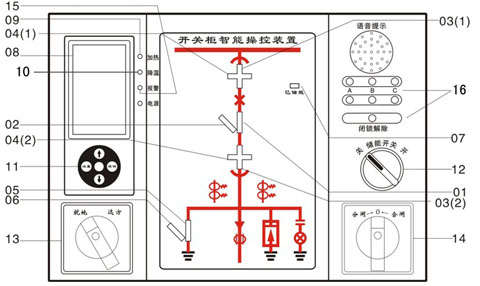 裝置面板上設(shè)有分閘/合閘轉(zhuǎn)換開關(guān)(或按鈕)、遠(yuǎn)方/就地轉(zhuǎn)換開關(guān)、儲能開關(guān)等操作開關(guān),方便用戶操作。