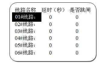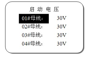 本菜單設置選線的啟動電壓值,按上下方向鍵移動光標選擇需修改的參數(shù)項,按確認鍵進入修改狀態(tài),此時按方向鍵修改參數(shù),修改后按“確認”鍵保存,按“取消”鍵不做保存。
