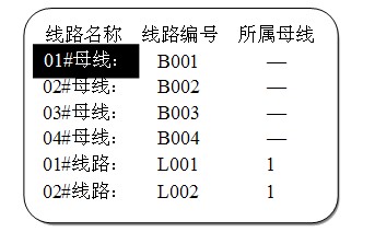 本菜單設置線路及母線的編號以及線路歸屬于哪條母線。