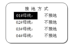 本菜單設置各段母線的接地方式,按上下方向鍵移動光標選擇需修改的參數(shù)項,按確認鍵進入修改狀態(tài),此時按方向鍵修改參數(shù),修改后按“確認”鍵保存,按“取消”鍵不做保