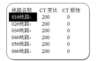 本菜單設置線路的CT變比及極性。按左右鍵翻頁,按上下方向鍵移動光標選擇需修改的參數(shù)項。按確認鍵進入修改狀態(tài),此時按方向鍵修改參數(shù),按確認鍵修改下一個參數(shù)。修改后按“確認”鍵保存,按“取消”鍵不做保存。