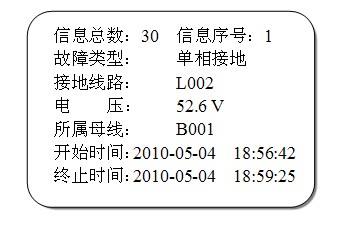 注:如系統(tǒng)發(fā)生故障后裝置斷電、按下復位鍵或重新選線,裝置不會記錄終止時間。