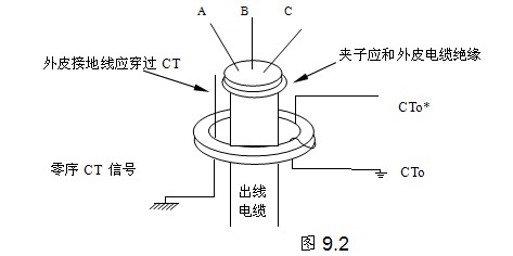 電纜外皮接地線的接地點在零序互感器上方時,電纜外皮接地線必須穿過CT后在線路側接地;接地點在零序互感器下方時,電纜外皮接地線則不能穿過零序互感器。