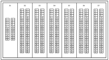 X5插件:端子1~8, Ⅰ~Ⅳ段母線零序電壓輸入;9~48,第1~20路CT出線。
