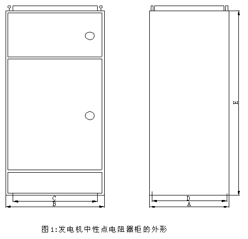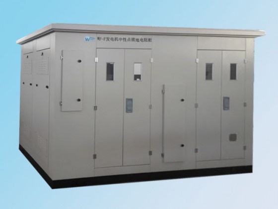 WF-F型發(fā)電機(jī)中性點(diǎn)電阻器柜中裝有干式單相接地變壓器、電阻器、隔離開關(guān)、避雷器等電器設(shè)備,可以整體方便安裝在發(fā)電機(jī)中性點(diǎn)附近。